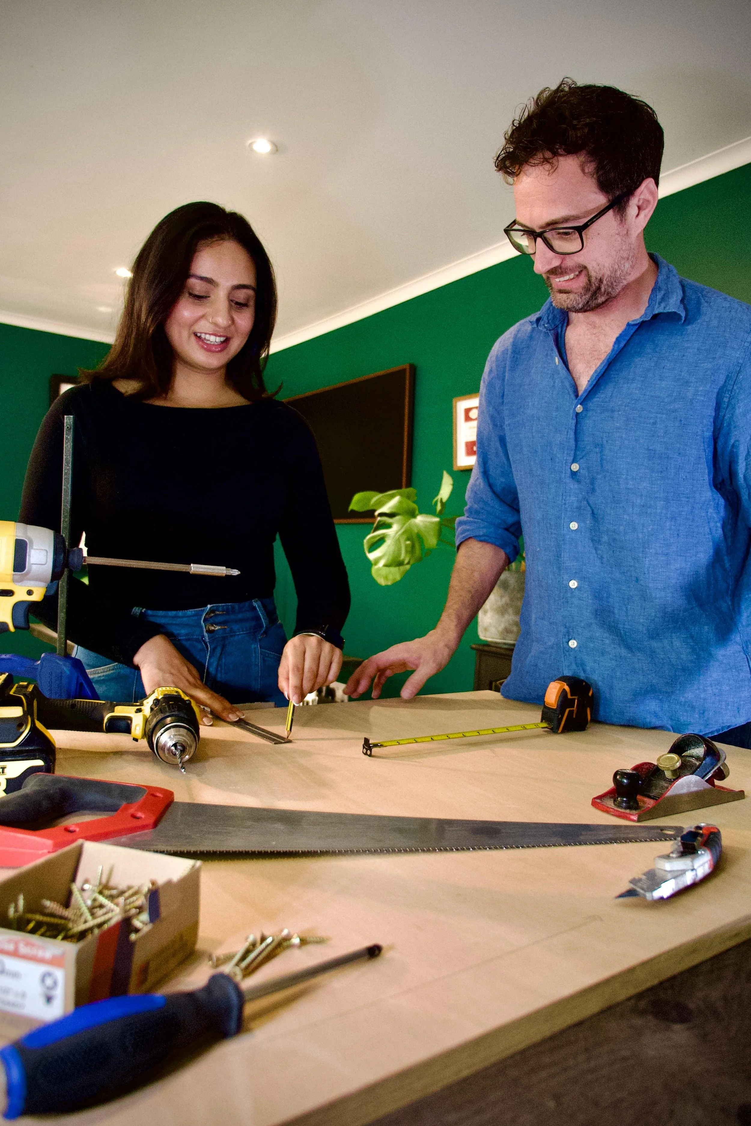 When Jas and Max bought their first flat in North London, money was tight, and the to-do list was long. Hiring a tradesperson for every little job just wasn't possible. Luckily, Max had grown up learning practical skills from his late father, a skilled carpenter. With decades of experience under his belt and having pivoted from the documentary film world to be a tradesperson, he naturally stepped into the role of mentor.